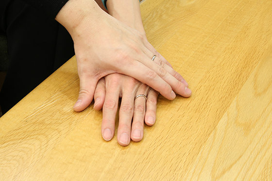 マリッジリングの内側に、イニシャルや