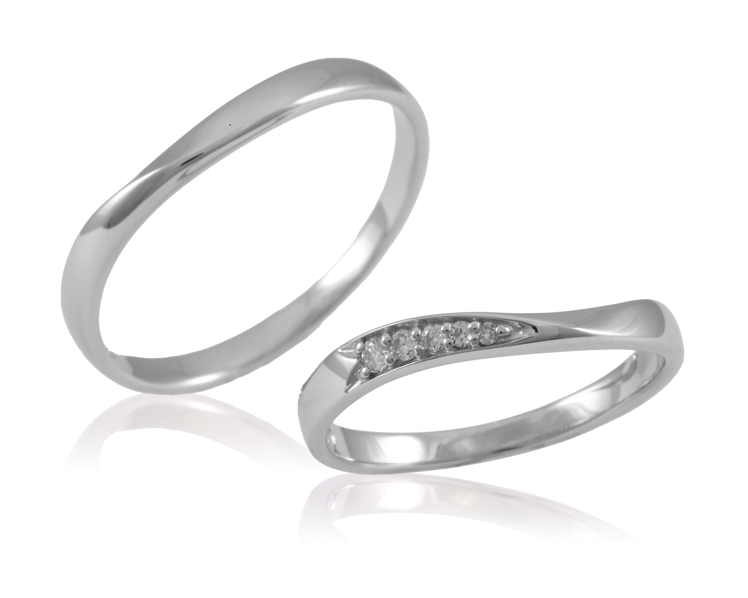 柔らかな雰囲気のVラインデザイン。ダイヤモンド5石が優雅なグラディエーションで輝き、愛を包み込む指輪。